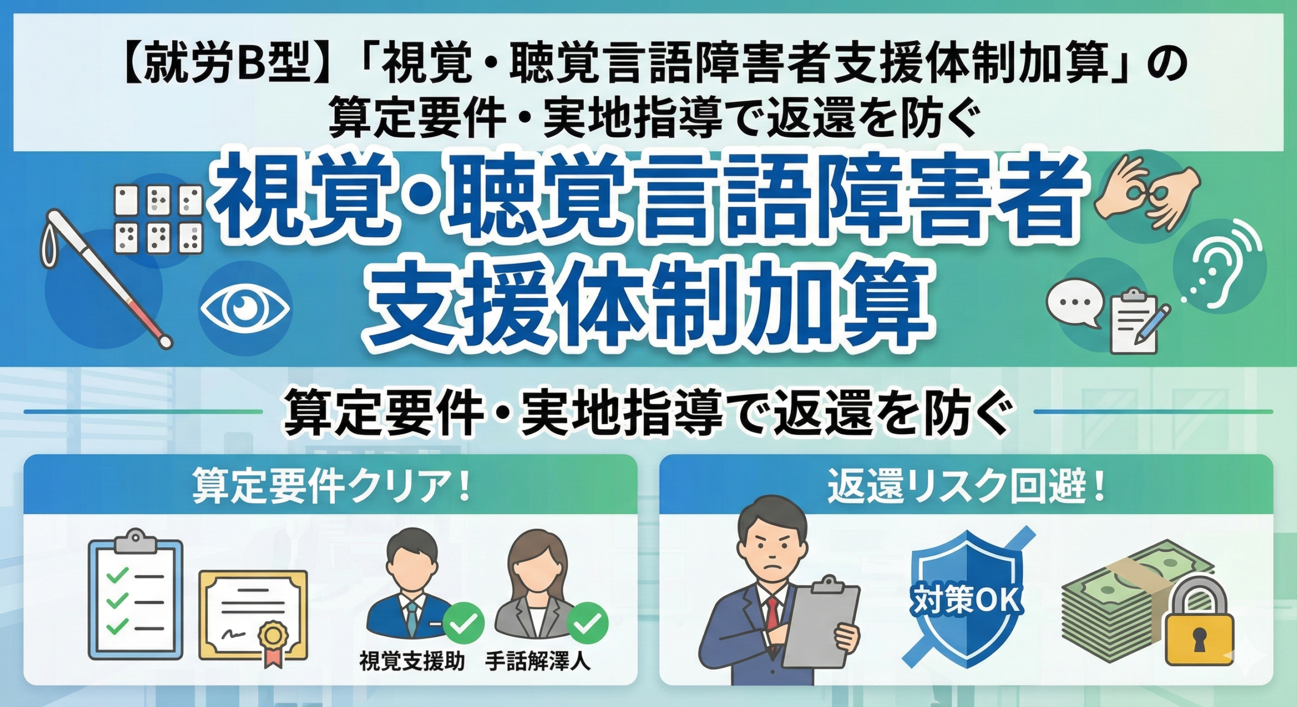 【就労B型】「視覚・聴覚言語障害者支援体制加算」の算定要件・実地指導で返還を防ぐ