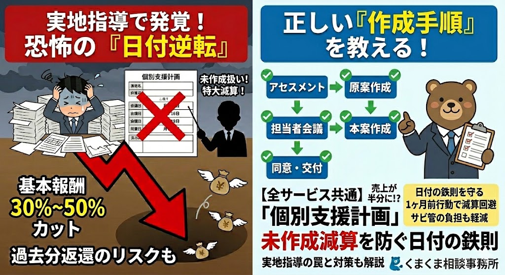 売上が半分に!?「個別支援計画」未作成減算を防ぐ日付の鉄則と実地指導の罠
